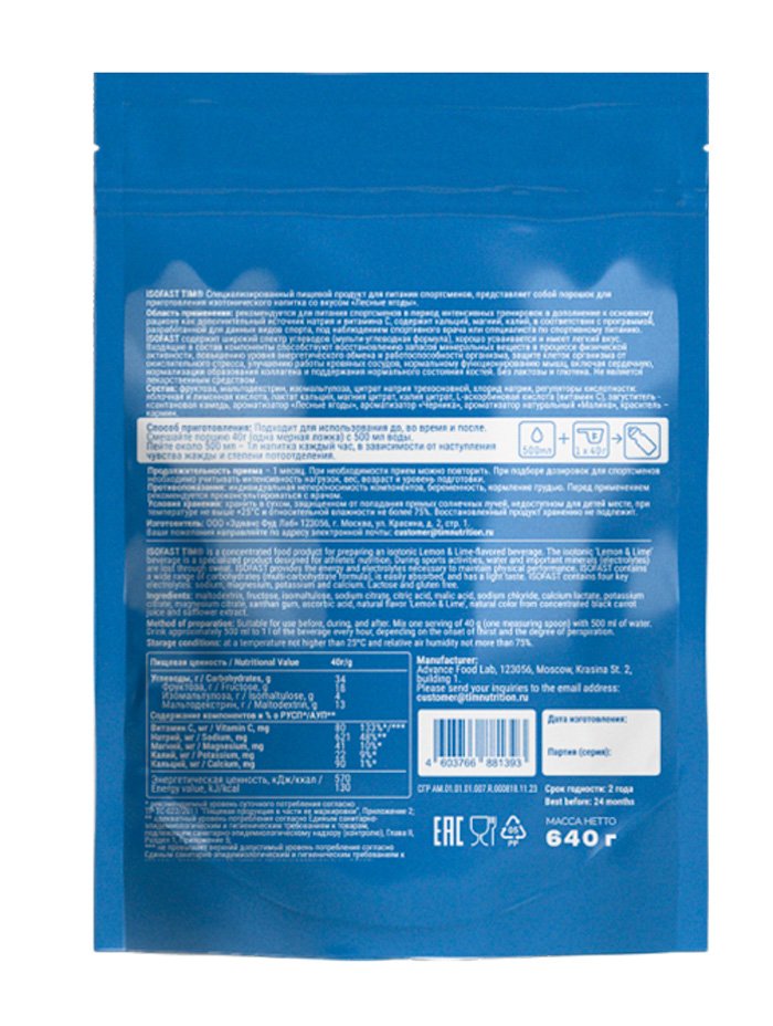 Напиток Tim Isofast 640 g Лесные Ягоды