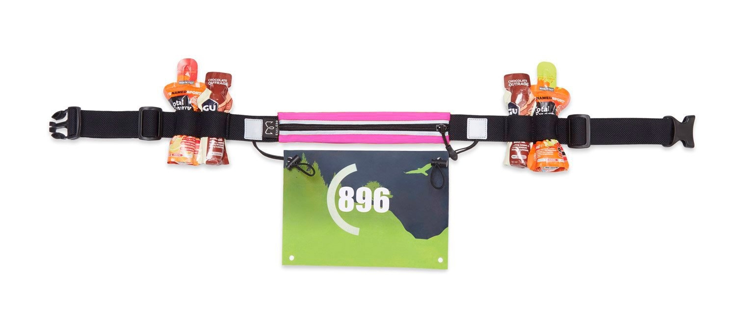 Сумка на пояс с креплением для номера и отделениями для гелей. Удобный аксессуар, который подходит для соревнований, беговых тренировок и других видов активности.